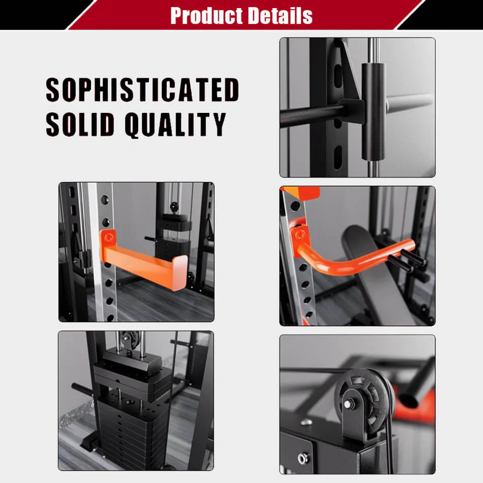 Ritkeep PMAX-5500 (RK-SM002) Multi-purpose smith functional trainer pro with adjustable pulleys delivers smoothness for lat pulldowns, cable crossovers, seated rows, and other body exercises.